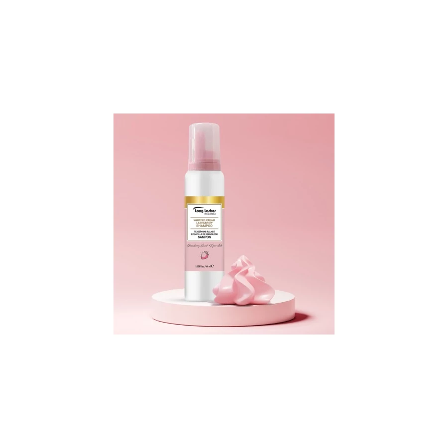 Long Lashes tejszínhab állagú szempilla-és szemöldök sampon - Eper illatú 100ml
