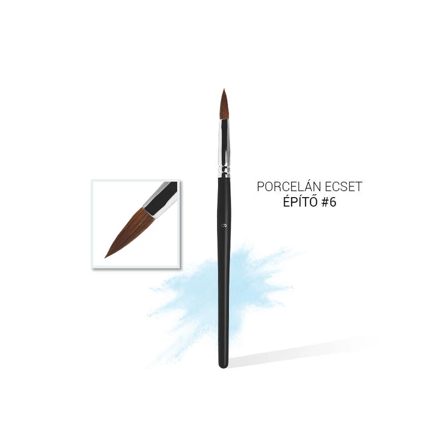 Kolinsky szőrből készült 6-os porcelán építő ecset, kerek, egy pontban végződő fejjel. Jó felszívóképességgel bír, így segítségével kisebb és nagyobb gombócokat is fel tudsz venni. Fekete, fanyéllel. Ideális kezdő és tanuló műkörmös szakemberek számára. Ecsetszőr hosszúsága: 20mm